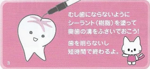 シーラントとは、奥歯の溝を薄いプラスチックで塞いで強化する予防法です。