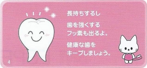 フッ素は、生えたばかりの子どもの歯を硬くして虫歯にかかりにくくしてくれる薬です。