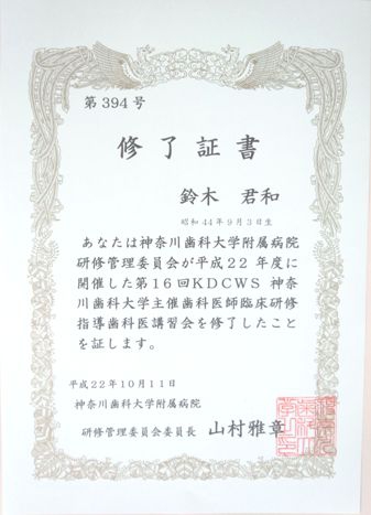 | 1993年 | ・東京歯科大学 卒業 ・東京歯科大学歯学医籍登録、保険医登録 |