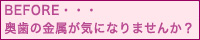 被せ物の表面がはげて、歯と歯の間に金属が見えて黒くなってしまった場合でも、キレイにすることができます。