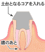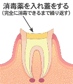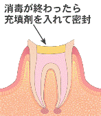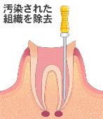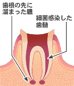 歯の神経が細菌におかされて炎症がおこり、膿がではじめている状態だと、神経が死んでしまっている可能性が高いので、神経を抜いて消毒治療をしなければいけません。