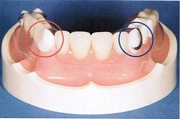 歯を1本~数本失った場合には部分入れ歯となります。人工の歯にバネがついており、隣の歯にひっかけて使うので、健康な歯に負担がかかっている状態が続きます。