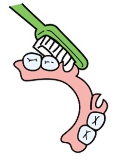 部分入れ歯は、バネの部分に汚れが溜まりやすいので、特にしっかり磨きます。