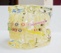 一般的な矯正治療方法で、歯にブラケットとよばれるワイヤーを固定する装置を接着し、ワイヤーを調整しながら長い時間をかけて歯を動かしていく方法です。